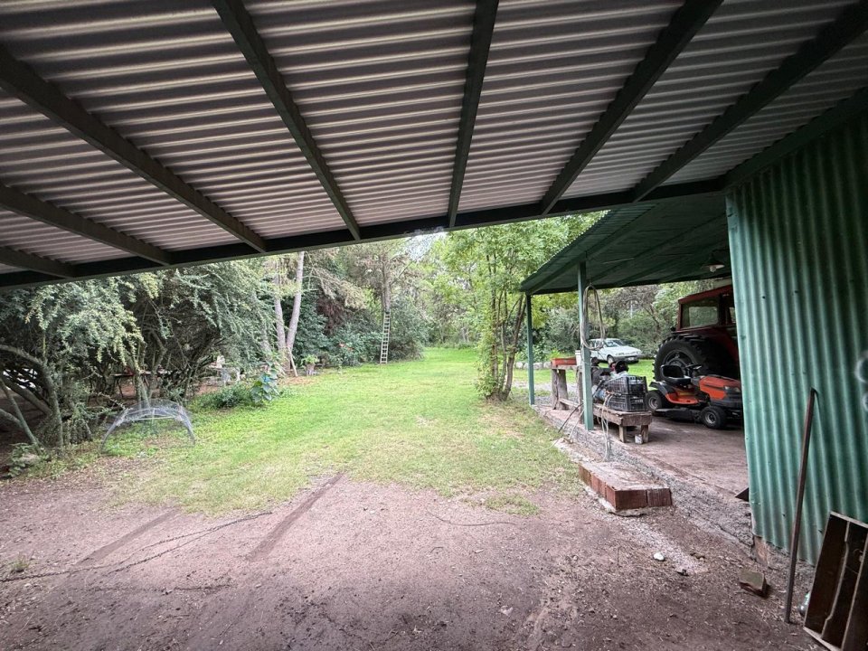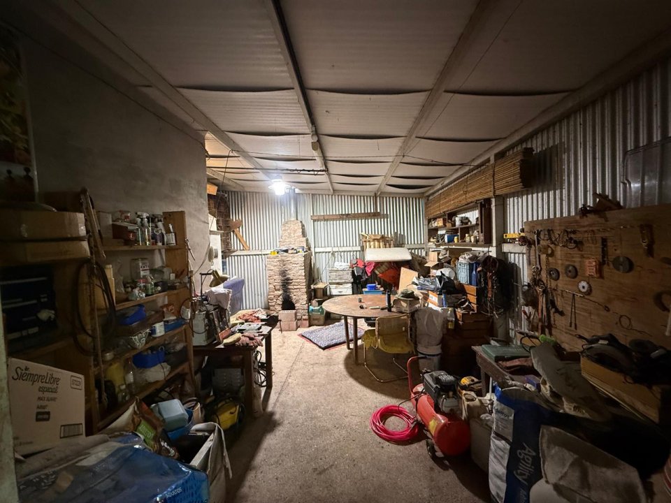 En el exterior, la propiedad posee un amplio galpón, ideal para almacenar maquinaria, herramientas o múltiples usos, aportando un espacio adicional muy útil.